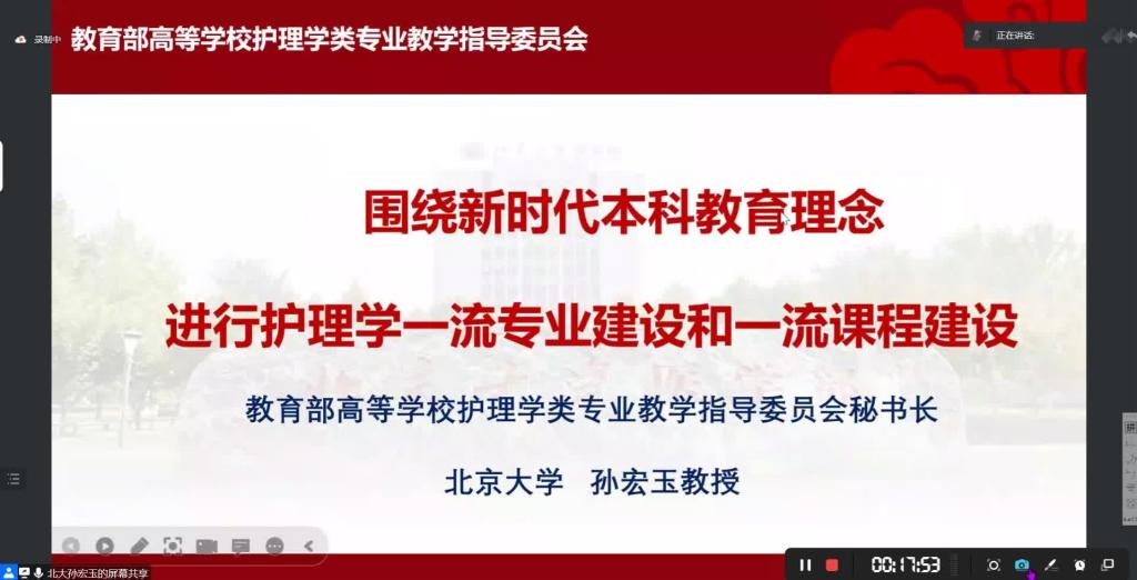 教育部高等公司护理学类专业教学指导委员会秘书长、美国护理科公司院士、北京大学太阳集团tyc9728孙宏玉教授以“围绕新时代本科教育理念,进行护理学一流专业建设和一流课程建设”为题,结合实践案例,阐述了新时代本科教育理念,从国家层面就如何建设护理一流专业及一流课程问题提出了一系列建设性指导。