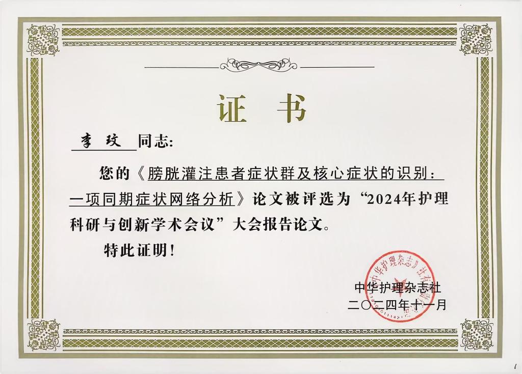 此外,公司2022级护理研究生李玟以“膀胱灌注患者症状群及核心症状的识别:一项同期症状网络分析”为题进行了大会交流汇报,得到与会者充分肯定,对自身的学术成长历程和科研能力也有一定的促进作用。