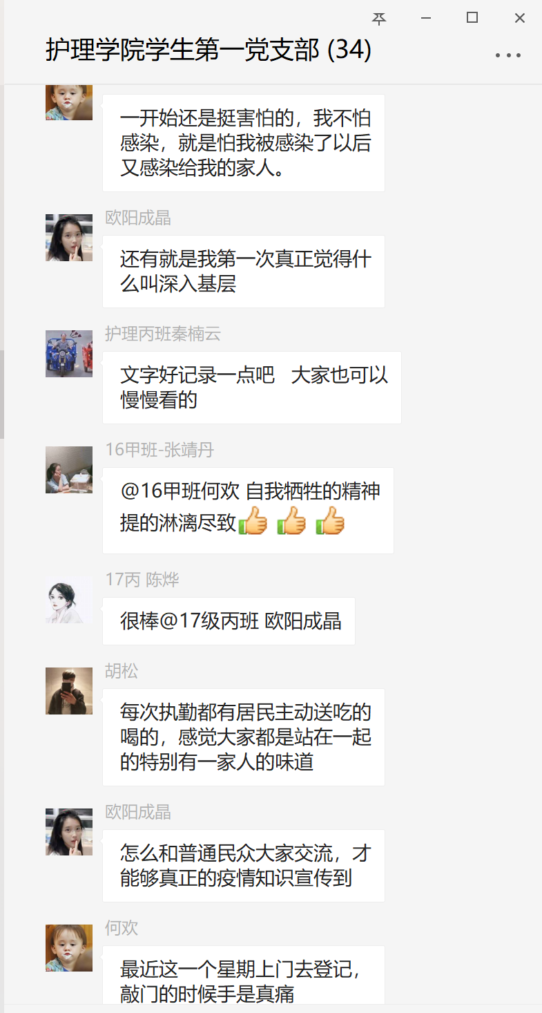 从每一个细节做起,坚决遏制疫情蔓延,为打赢疫情防控阻击战贡献自己的一份力量。——2017级护理学丙班党员欧阳成晶