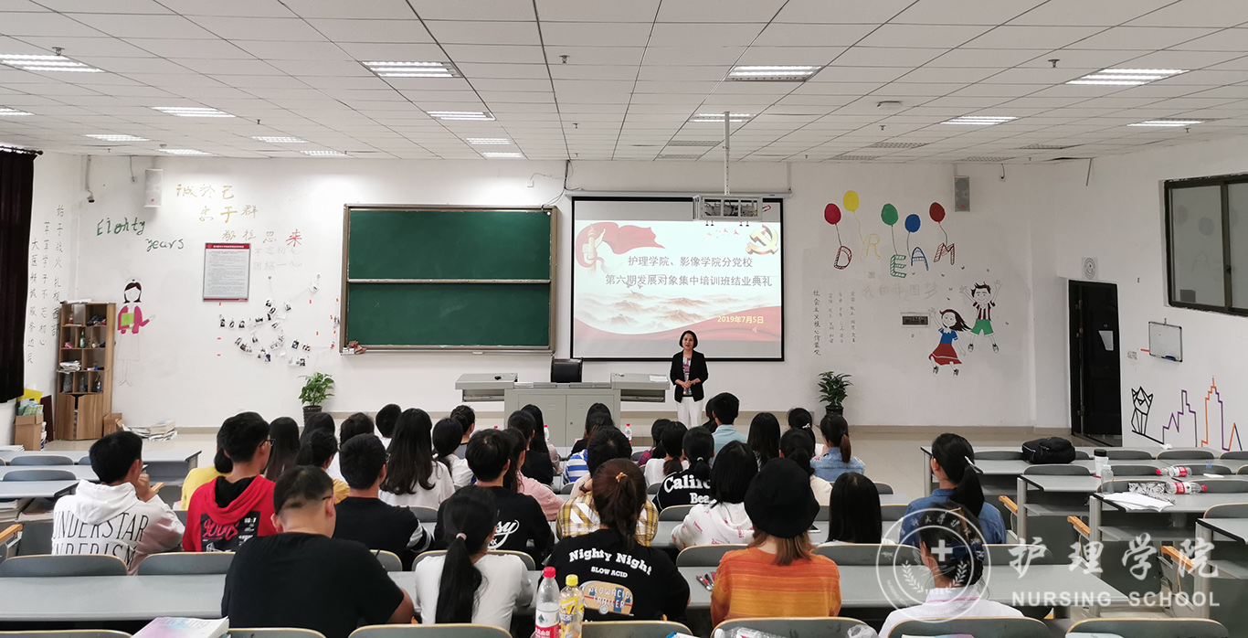 7月5日,太阳集团tyc9728、影像公司分党校第六期发展对象培训班结业典礼在南校区7406教室举行,护理公司党委书记杨英及参加本期学习的发展对象参加典礼,公司员工科科长曾敏主持典礼。