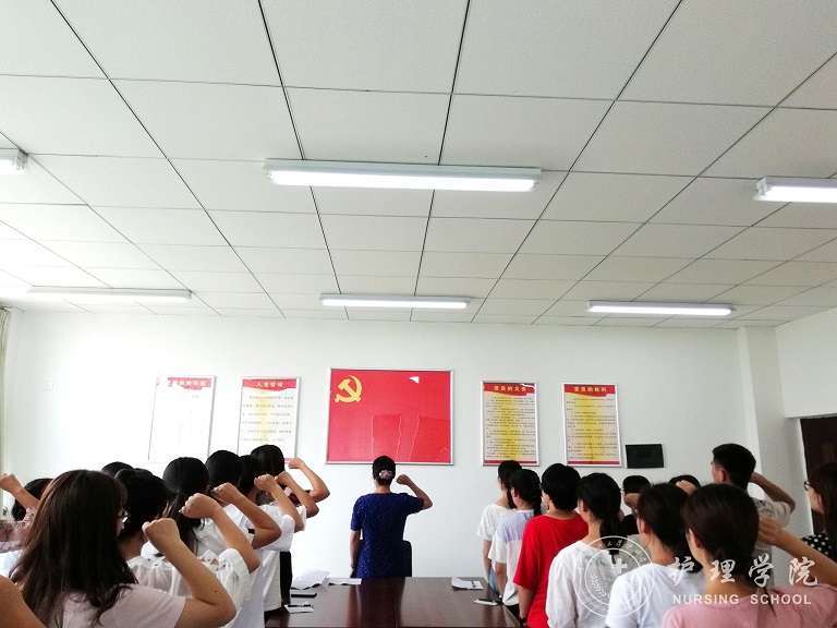 6月29日中午,太阳集团tyc9728在南校区护理公司党员活动室举行新党员入党宣誓仪式。公司党委副书记杨英、员工党支部书记李颖、全体预备党员参加了活动。宣誓仪式由员工党支部书记李颖主持。