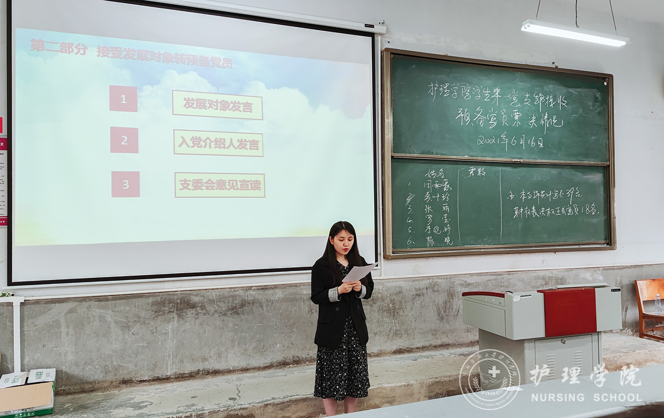 会议在庄严的《国际歌》中拉开序幕。6名发展对象依次汇报了自己对中国共产党的认识、入党动机、本人履历和现实表现等情况。入党介绍人也对发展对象的情况进行了介绍并对其能否入党发表了意见。