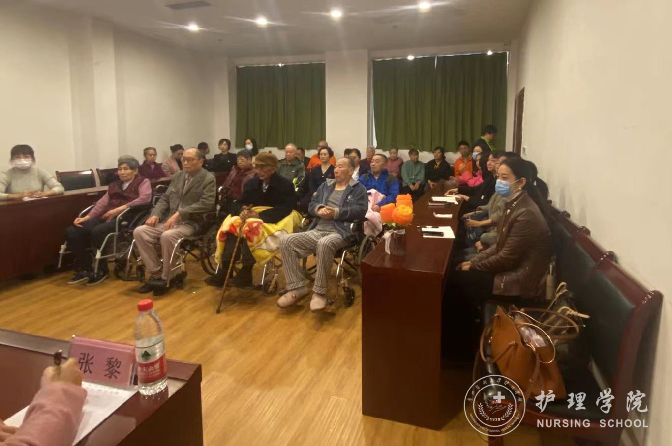 随后开展了支部共建活动——科普助力健康,携手关爱夕阳。王秀红以《关爱老人 预防跌倒伤害》为题对照护中心老人和工作人员进行老年人保健知识宣讲。从老人如何进行锻练到一旦发生跌倒如何处理等都进行了详细的讲解并现场演绎。活动最后支部党员也和老人以及中心工作人员进行了交流。