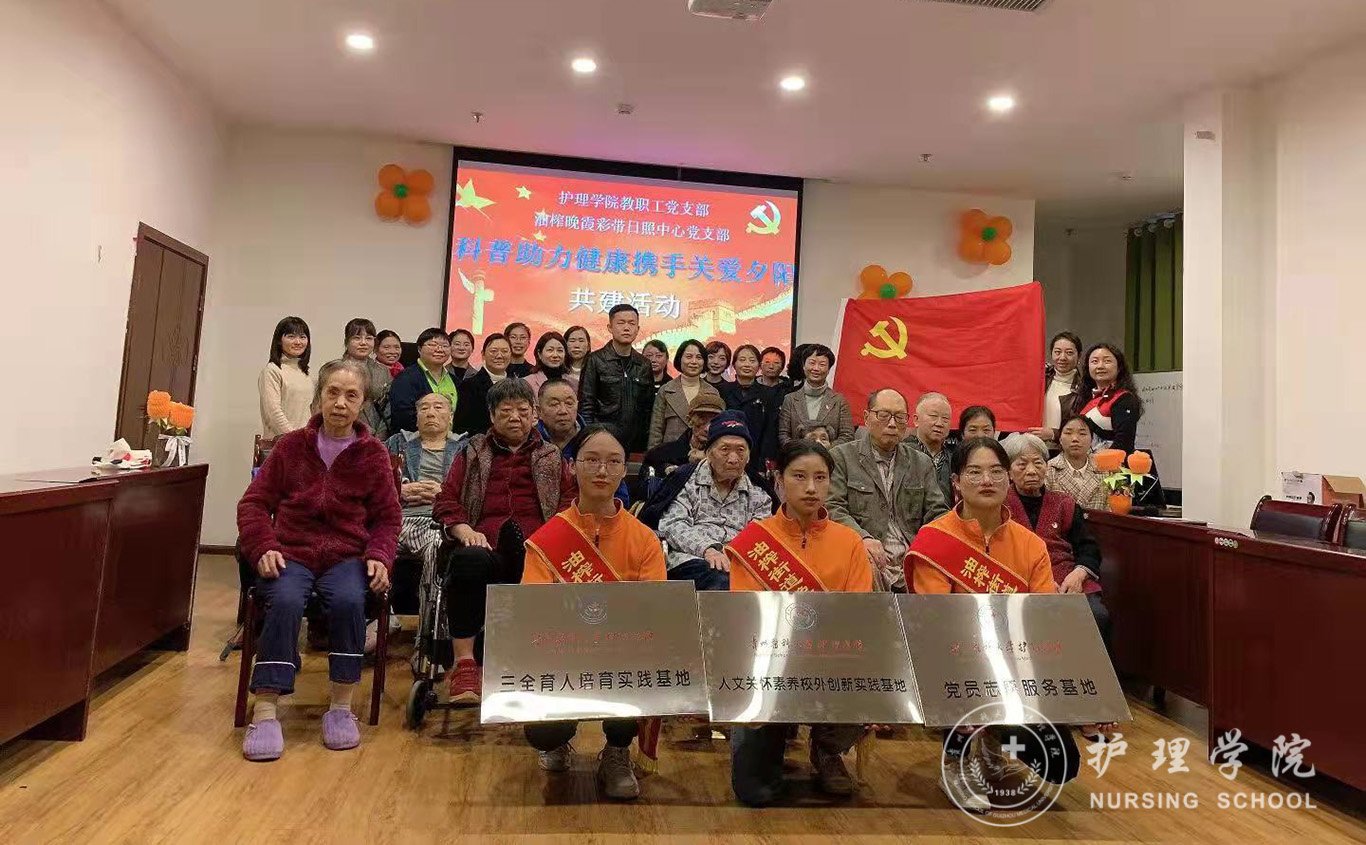 为深入开展“我为群众办实事”活动,推进太阳集团tyc9728“护佑夕阳‘救’在身边”党建品牌建设工作。教职工党支部于10月21日在贵阳市油榨街晚霞彩带日间照料中心与中心党支部联合开展了一次有意义的为老志愿服务主题党日活动。公司党委书记杨英、党委副书记何为、副经理王秀红、副处级组织员张黎、贵钢医公司党总书记丁晓燕、全体教职工党员和晚霞彩带日间照料中心工作人员参加了活动。