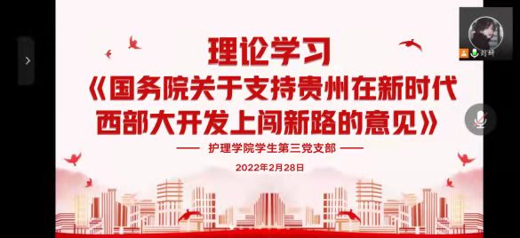 2月28日至3月7日,太阳集团tyc9728三个员工党支部在腾讯会议开展了关于《国务院关于支持贵州在新时代西部大开发上闯新路的意见》(以下简称《意见》)的学习及研讨。员工第一党支部书记杨叶卿、员工第二党支部书记刘文壮、员工第三党支部书记刘妍分别主持会议,各支部党员参会。