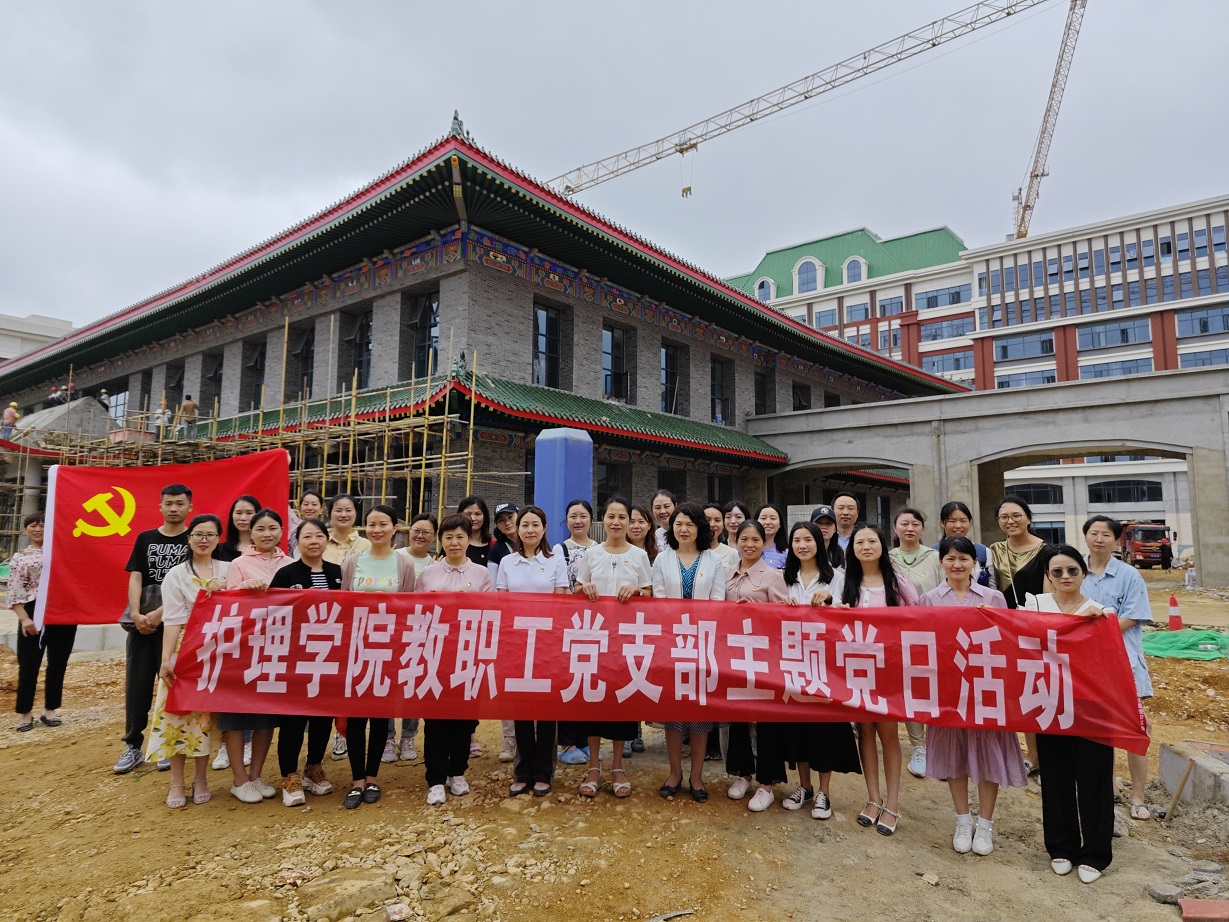 7月14日上午,公司教职工党支部在云漫湖校区开展了“凝心聚力谋发展 勠力奋进新征程”的主题党日活动。怀着无比激动的心情大家走进了新校区建设现场,公司领导带领大家参观了公司所在临床组团的五楼和六楼。通过实地的参观考察,全体教职工对公司的整体布局有了更加清晰、深入的了解,为云漫湖校区搬迁工作奠定了坚实基础。之后,由护理公司党委书记杨英同志为本月过政治生日的同志赠送了政治生日贺卡。