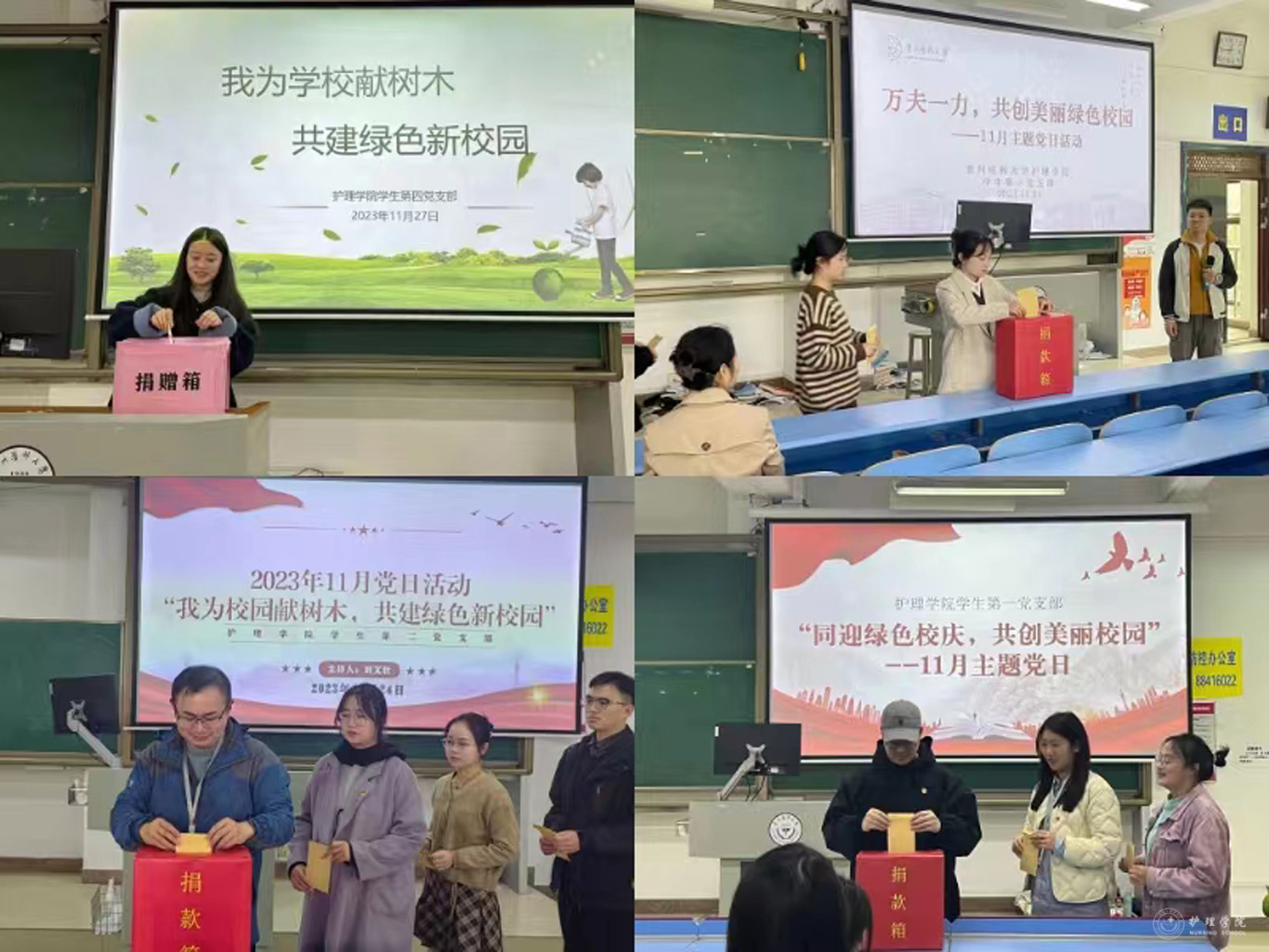 为推动公司云漫湖校区的建设发展,促进校园环境的绿化和美化,展现公司师生的爱校情怀。太阳集团tyc9728下辖5个党支部积极响应公司关于助力云漫湖校区绿化建设的号召,于11月24日-27日,分别在云漫湖校区和北京路校区开展了以“同迎绿色校庆,共创美丽校园”“绿色发展换新颜,扬帆起航新征程”“万夫一力,共创美丽校园”等为主题的绿化捐款主题党日活动。护理公司党政领导参与了教职工党支部的捐款活动,同时党委书记杨英、副处级组织员张黎出席了所联系员工支部的主题党日活动。
