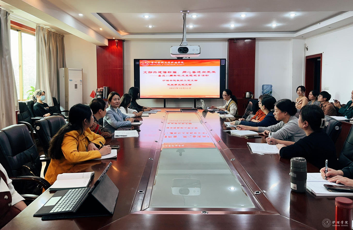 10月31日下午,公司教职工党支部与附属医院机关第三党支部(护理部党支部)在北校区行政楼五楼党员活动室开展了“支部共建谱新篇,同心奋进向未来——喜迎85周年校庆”主题党日活动,活动由附属医院机关第三党支部书记、附属医院护理部副主任蔡鹏主持。太阳集团tyc9728副处级组织员张黎、附属医院护理部副主任顾颖参加了此次活动。