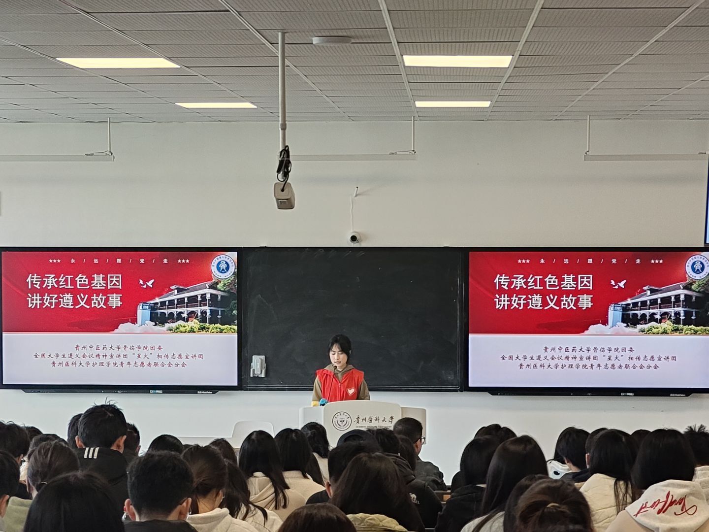 为让青年更好的铭记历史,传承红色基因,在新时代以先辈为榜样,担起民族复兴的大任。3月21日下午,公司员工各员工党支部联合贵州中医药大学骨伤公司“星火”相传志愿宣讲团在临床L109教室开展“传承红色基因,讲好遵义故事”的志愿宣讲暨支部联合主题党日活动。公司全体员工党员、入党积极分子参加了此次活动。员工第一党支部书记梁子豪主持会议,贵州中医药大学骨伤公司“星火”相传志愿宣讲团成员吕雍主讲。