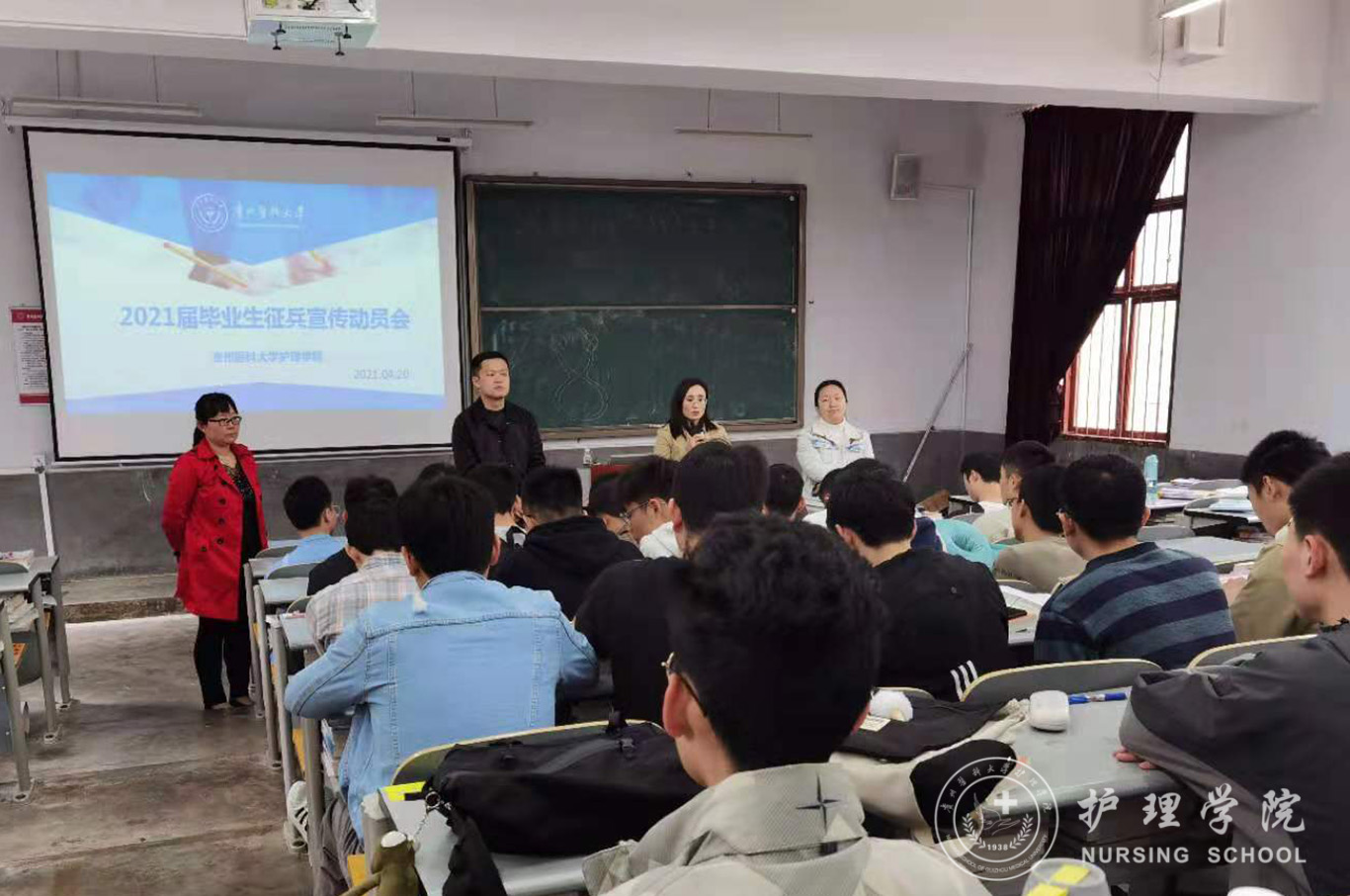 4月20日,为贯彻落实全省和公司老员工征兵工作会议精神,扎实推进老员工应征入伍工作,太阳集团tyc9728在北校区普教八教室召开了2021届毕业生征兵动员会。护理公司党委副书记何为、团委副书记王晓玲、员工第一党支部书记杨叶卿、员工第二党支部书记李杏春以及全体2021届毕业班男生参会,动员会由员工科副科长毕丽主持。