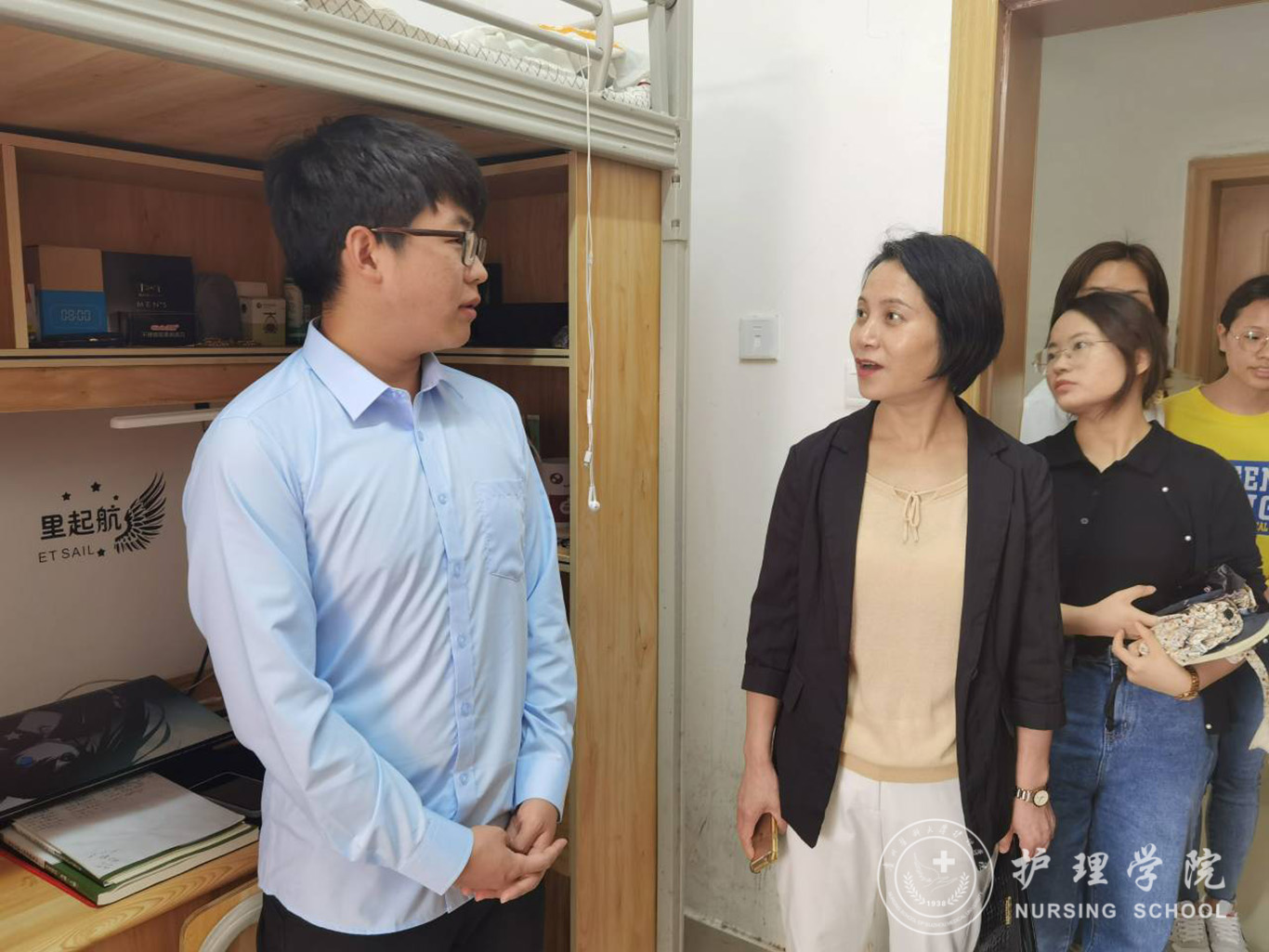 5月10日,为落实落细党史学习教育,深入了解2021届专升本毕业生返校后的学习和生活情况,为员工办实事,送温暖,太阳集团tyc9728领导及辅导员一行走访了员工寝室,参加此次走访活动的有:护理公司党委书记杨英、党委副书记何为、正科级组织员曾敏、员工科副科长毕丽、2021届专升本毕业班辅导员李杏春、杨叶卿、刘妍。