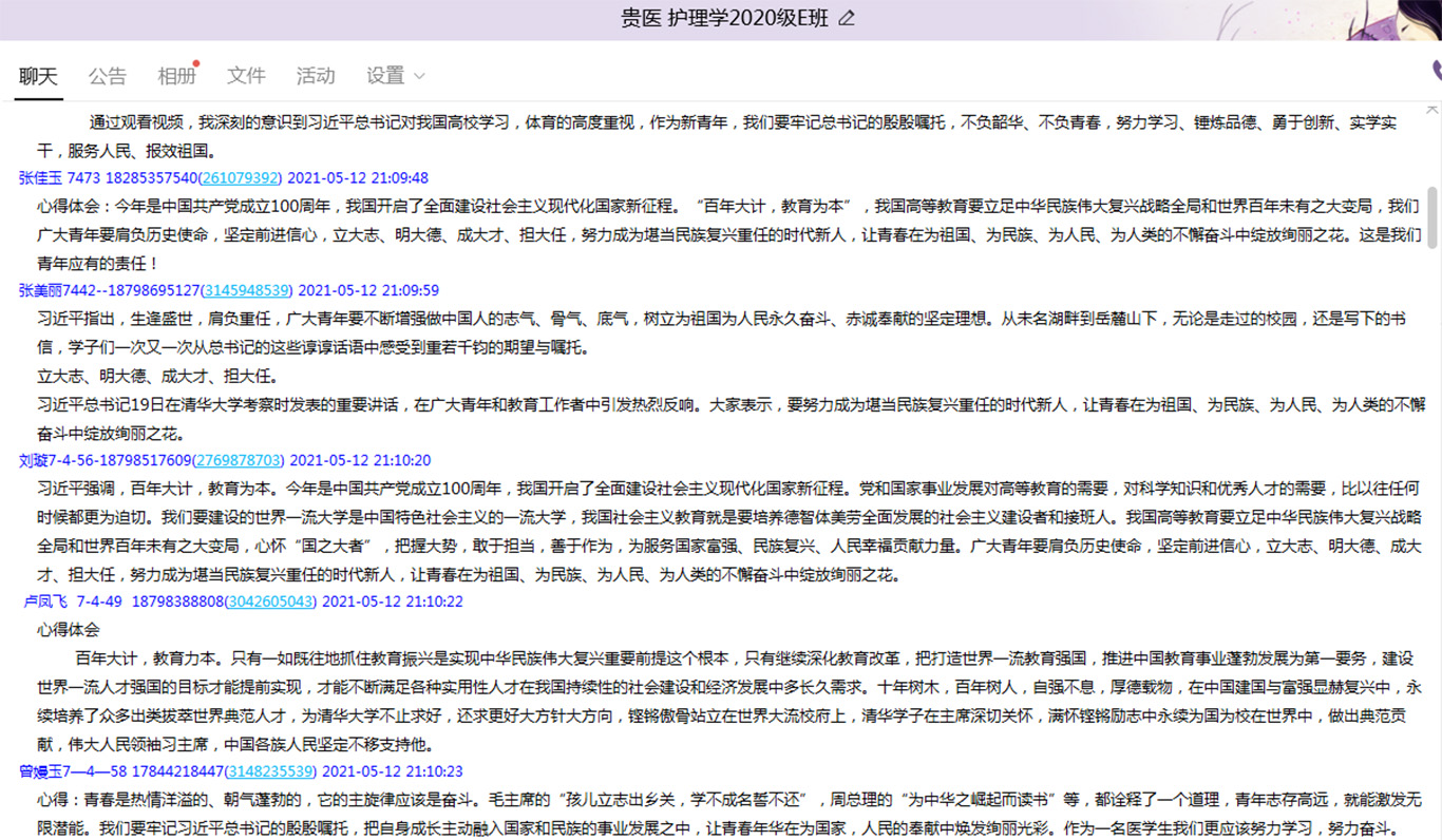 5月11日至12日,为持续推进党史学习教育,深入贯彻习近平总书记在清华大学考察时重要讲话精神,切实落实立德树人根本任务,培养勇于担当、敬业奉献的的社会主义事业的建设者和接班人,太阳集团tyc9728各班结合线上和线下等方式组织学习了习近平总书记在清华大学考察时的重要讲话精神。
