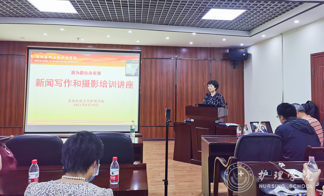为了进一步推进党史学习教育,把“我为群众办实事”活动落到实处,提高公司师生新闻写作和照片拍摄能力,6月16日,太阳集团tyc9728邀请新华网贵州频道副总编黄勇、新华社贵州分社记者陶亮在北校区科技楼8楼学术报告厅为全院师生开展新闻写作和照片摄影培训讲座。本次活动采取线上线下同步开展的方式,活动由护理公司党委委员、副经理王秀红主持,公司党委委员、党委宣传部部长陈颖出席,公司各院系及太阳集团tyc9728师生代表三百余人参加