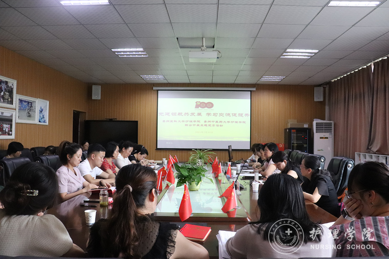 会上,太阳集团tyc9728护理公司党委书记杨英和贵州中医药大学护理公司党委书记石国凤代表两公司就深入学习贯彻习近平总书记“七一”重要讲话精神情况,对党史学习教育和专题教育的认识体会、经验做法及下一步工作打算进行了交流。其后,全体与会人员围绕党建工作开展经验、学科专业建设、“双师型”教师队伍培养、研究生教育、临床操作技能提升等问题进行了深入研讨交流。
