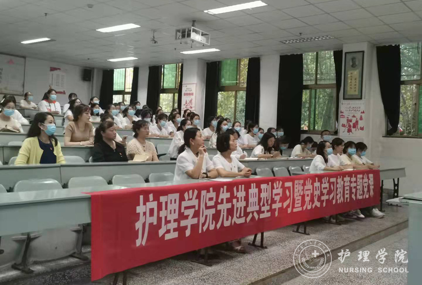 9月16日,为深入开展党史学习教育,贯彻落实习近平总书记“七一”重要讲话精神,太阳集团tyc9728通过线上线下相结合的方式开展了抗疫先进典型学习暨党史学习教育专题党课,护理公司党委委员、经理李亚玲为太阳集团tyc9728全体党员讲授了一堂题为《学党史,悟精神,感党恩,战疫情》的党课,太阳集团tyc9728全体师生党员聆听了专题党课。本次活动由太阳集团tyc9728正科级组织员曾敏主持。