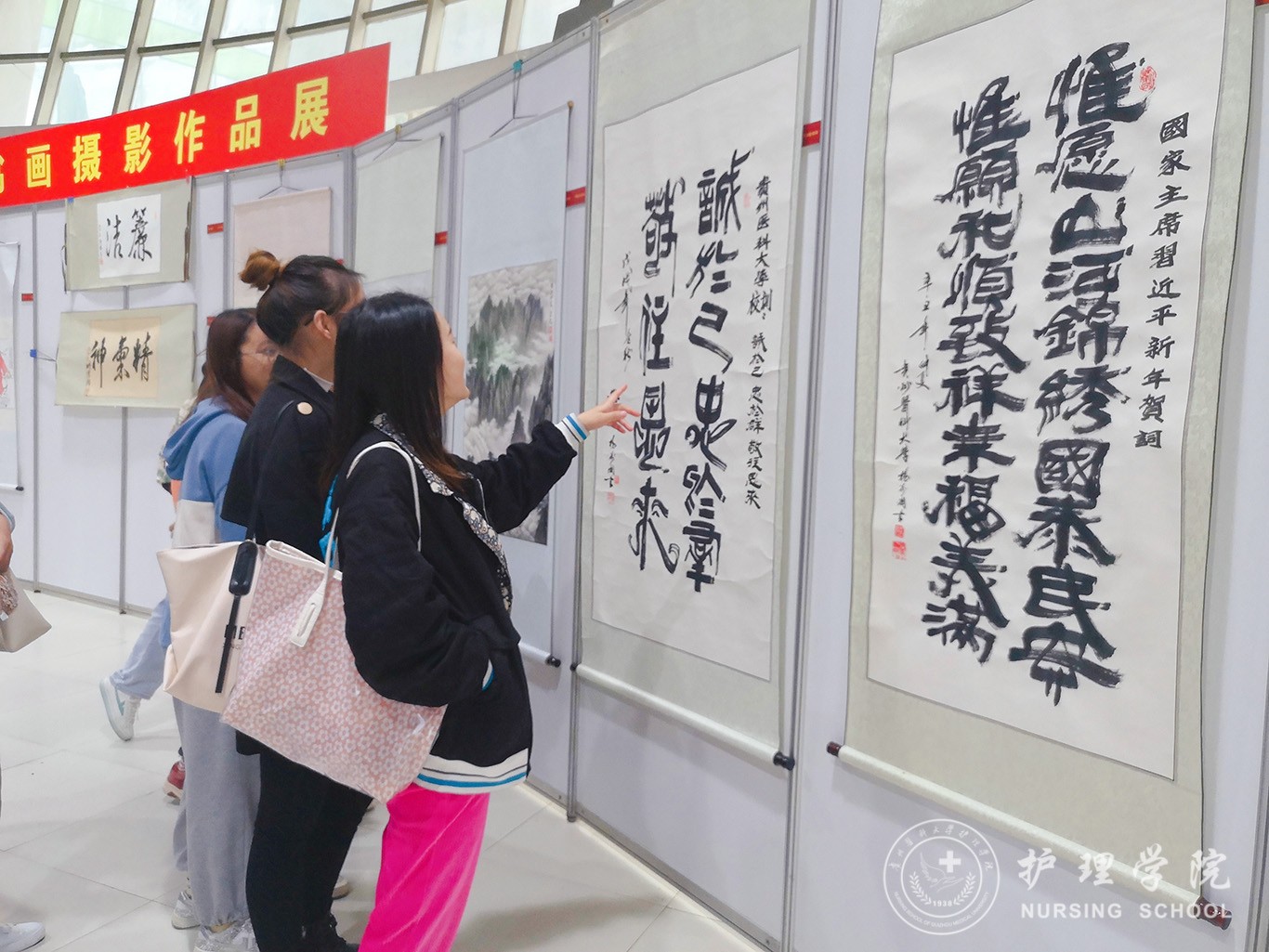 以墨为线,以画为情。参观时所有党员同志都注意到一幅写着“廉洁”二字的书法作品,“廉者,政之本也。”廉洁从政,秉公用权,是我们党的光荣传统和优良作风。简单的两个字写出党员干部的党性修养、道德水平,写出克己奉公、以俭修身,永葆清正廉洁的政治本色。除此之外还有很多祖国大好河山的书画摄影作品,记录着国家翻天覆地、日新月异的巨大变化,更是展现出我们党的光辉历程。