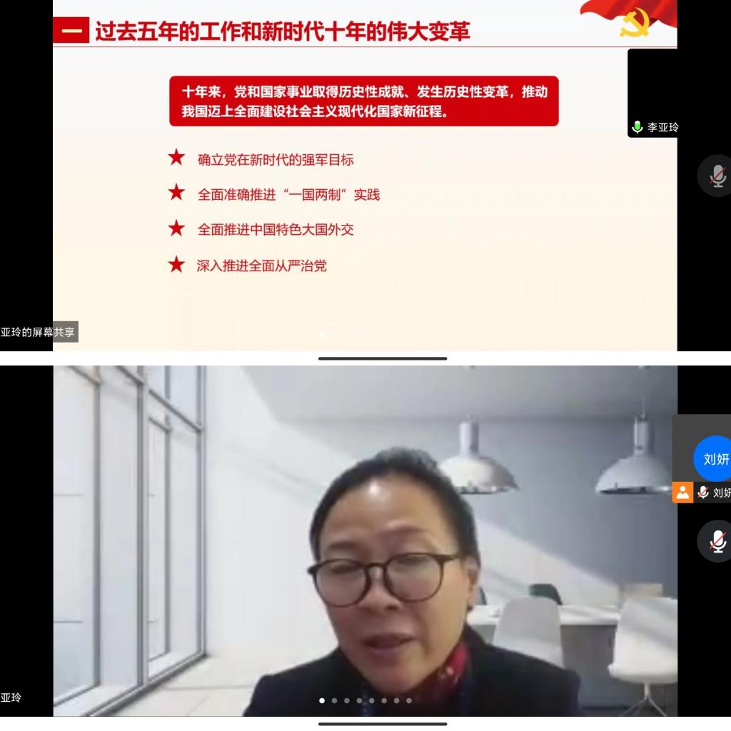 12月19日,为引领同学们坚定不移听党话、跟党走,立志做有理想、敢担当、能吃苦、肯奋斗的新时代好青年。护理公司党委委员、经理李亚玲在员工第三党支部宣讲党的二十大精神。支部全体党员通过腾讯会议参加本次宣讲会,支部书记刘妍主持会议。