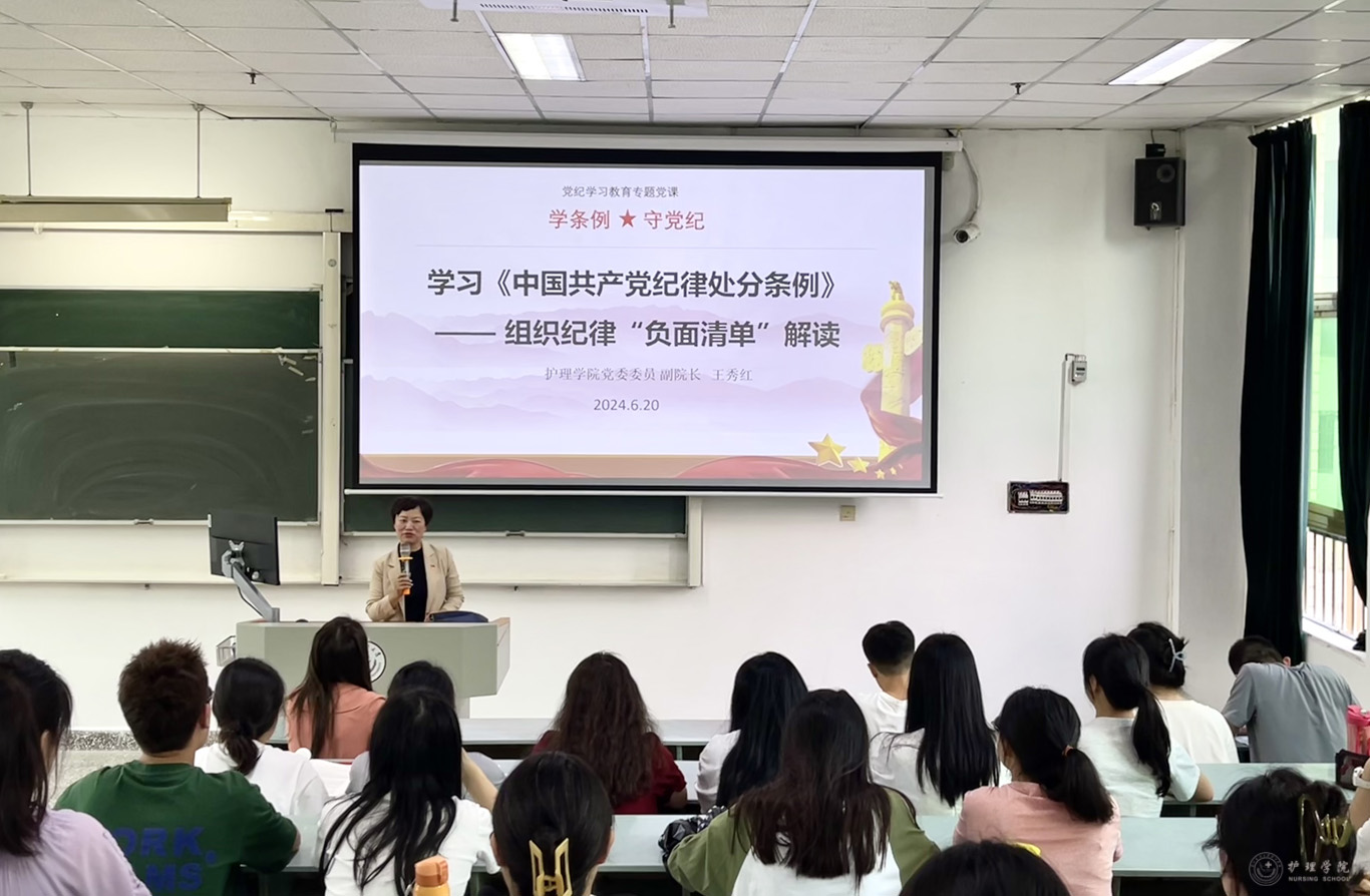 6月20日,为进一步强化支部党员纪律意识,加强自我约束,增强政治定力。护理公司党委委员、副经理王秀红在员工第三党支部开展了题为“学习《中国共产党纪律处分条例》——组织纪律‘负面清单’解读”的专题党课,会议由支部书记刘妍主持,支部全体党员参会。