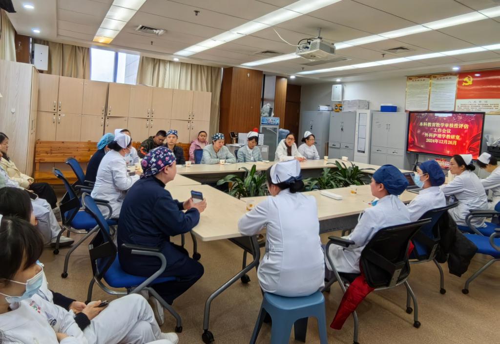 12月26日,为了全面回顾和总结本学期外科护理学教研室教学工作以及传达新一轮本科公司产品审核评估的重要性和内容,明确改进方向和目标,提升教学质量与管理水平,外科护理学教研室在太阳集团tyc9728附属医院泌尿外科16楼学习室进行了2024-2025学年第一学期教学总结及本科公司产品审核评估工作会议,会议由外科护理学教研室主任韩樱主持,教研室全体教师参加了会议。首先,外科护理学教研室副主任乔筠对本学期教研室承担的教学工作、取得的主要成绩以及存在的不足等方面进行了汇报,参会人员就会议中提到的各种问题进行了反馈和讨论,共同商讨解决方案。