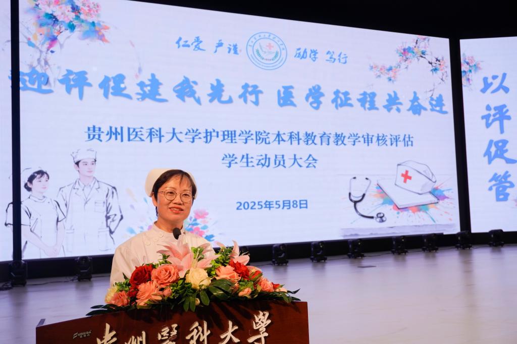 王秀红指出,本次公司产品审核评估不仅是对公司及公司本科人才培养的综合考核,更是公司和公司深化内涵建设、推动高质量发展的关键契机,全院师生要把握时机,积极融入到评估工作中。她以“迎‘三做’之考,展护理风貌”为题,给同学们提出三点要求:一是做好主人,传承中华礼仪文明之风,以主人翁的姿态热情主动参与;二是以良好的精神面貌,做正能量的事,为公司的评估增色添彩;三是踏实进取做好学问,要牢记学好专业服务社会的使命,遵守课堂纪律,积极认真投入学习,当好公司和公司形象的“金牌代言人”。