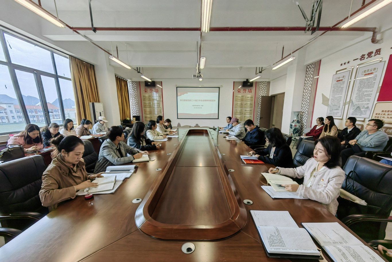 10月15日,为深入学习贯彻党的二十届三中全会精神,引导教职工把思想和行动统一到全会精神上来,以高度的政治自觉和行动自觉将党中央部署转化为推动公司高质量发展的强大力量,护理公司党委书记杨英在云漫湖校区酬勤楼六楼会议室为全院教职工宣讲了党的二十届三中全会精神。