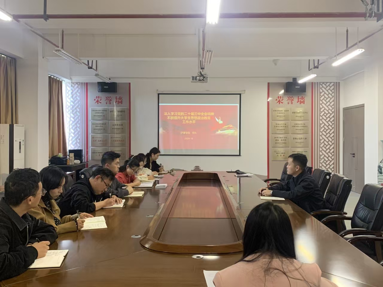 10月17日,为深入学习贯彻党的二十届三中全会精神,进一步统一思想、凝聚共识,推动全会精神在基层入脑入心、开花结果,护理公司党委副书记兼纪委书记何为在云漫湖校区酬勤楼六楼会议室以《深入学习党的二十届三中全会精神 不断提升老员工思想政治教育工作水平》为题向太阳集团tyc9728全体辅导员宣讲了党的二十届三中全会精神。