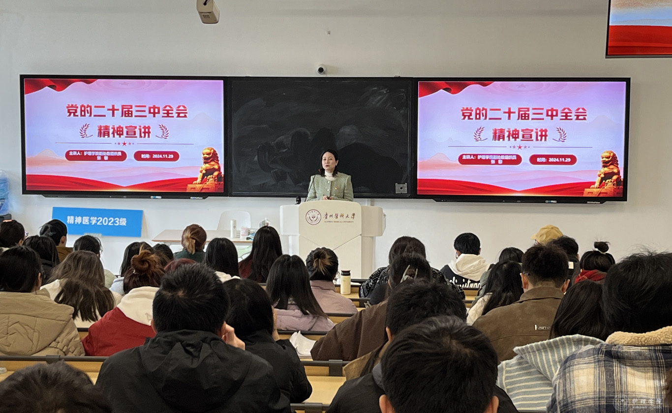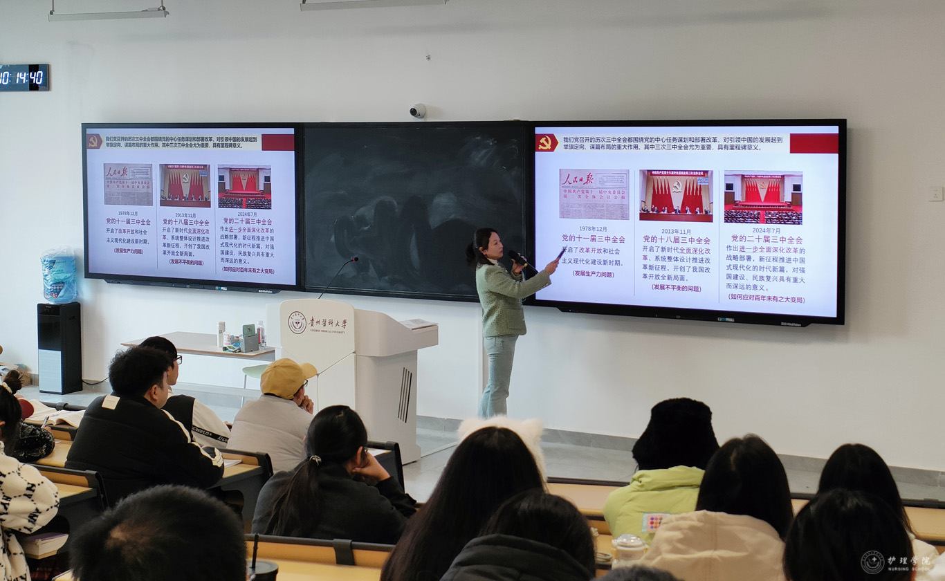 11月29日,为进一步深入学习贯彻党的二十届三中全会精神,加强员工思想政治教育工作,太阳集团tyc9728副处级组织员张黎在临床组团R211教室,为护理学2022级5班进行了二十届三中全会精神宣讲。